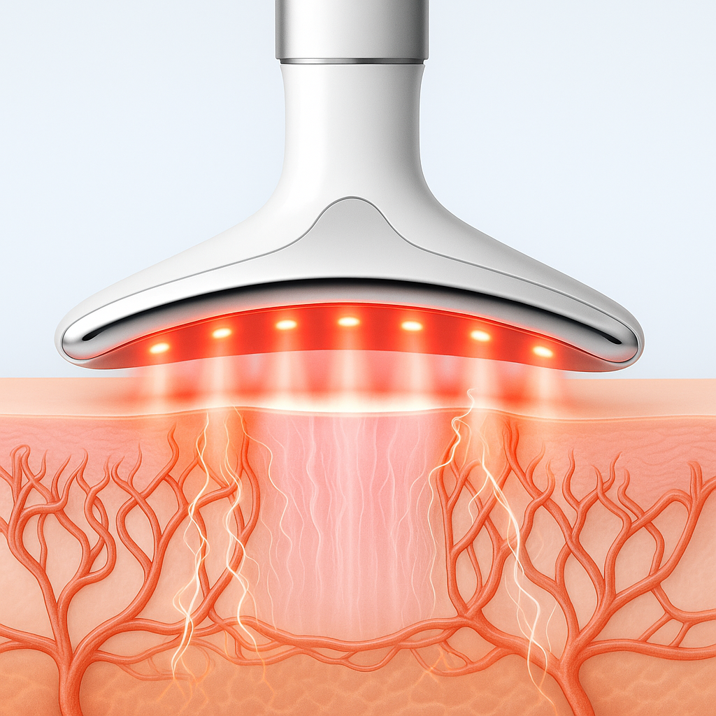 Micro Vibration EMS gently stimulates facial muscles to improve circulation and promote natural collagen production, helping to lift, firm, and energize tired skin.